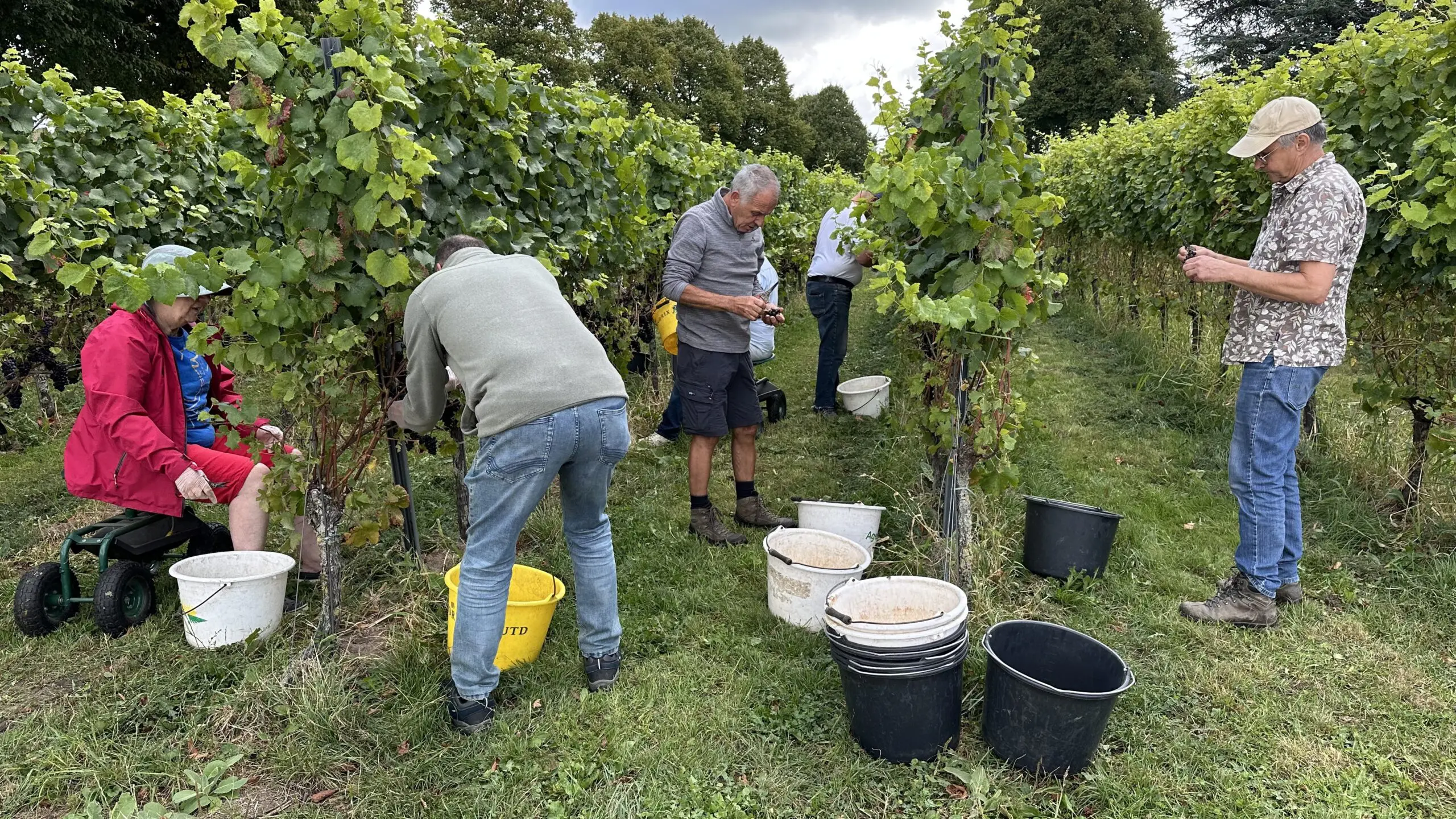 De vrijwilligers helpen niet alleen bij de druivenpluk, maar het hele jaar door bij allerhande werkzaamheden. Denk bijvoorbeeld takken opbinden, ondersteunen bij het snoeien enz. enz. Het is altijd erg gezellig en je steekt ook nog eens veel op over het boeiende proces van wijn maken.